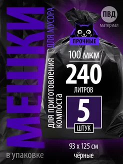 Мешки для мусора, 240 л, 5 шт, ПВД, 100 мкм, 93х125см
