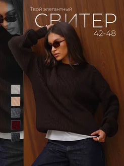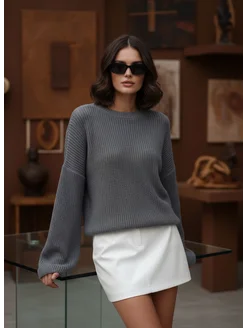 Свитер женский вязаный оверсайз удлиненный рукав фонарик