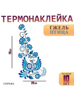 Термонаклейка «Гжель птица», уголок справа, 20 х 35 см, набо