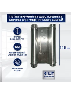 Петля барная пружинная двусторонняя 115*70мм набор 4 шт