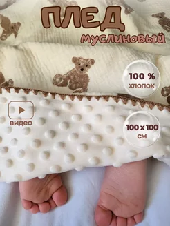 Плед для новорождённых муслиновый в коляску на выписку