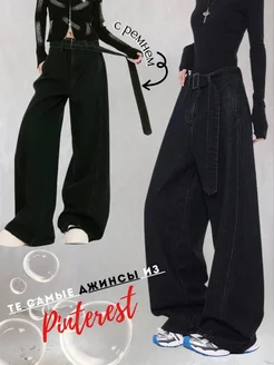 Джинсы багги широкие с ремнем