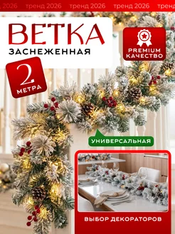 Новогодняя гирлянда Заснеженная ветка хвойная