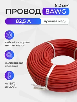 Провод 8AWG (8,2мм2). Луженая медь. 2 метра, красный