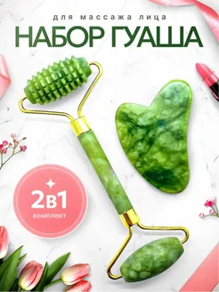Массажный набор массажер для лица роллер и скребок Гуаша