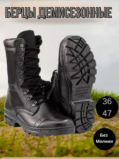 Берцы осенние кожаные с молнией и шнуровкой армейские