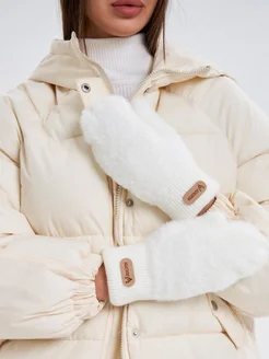 Варежки зимние пушистые белые рукавицы теплым мехом Подарок