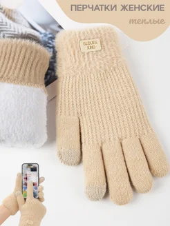 Перчатки зимние теплые вязаные пушистые осенние сенсорные