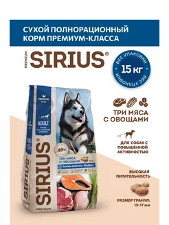 Сухой корм для собак, 3 мяса с овощами 15 кг