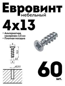 Евровинт еврошуруп 4х13 60 шт потайная головка