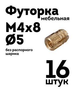 Футорка мебельная D5 М4 х 8 16 шт латунная без шарика