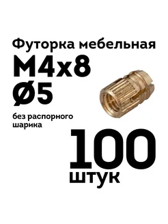 Футорка мебельная D5 М4 х 8 100 шт латунная без шарика
