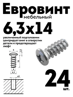 Евровинт еврошуруп 6 3х14 полукруглая головка 9мм 24 шт