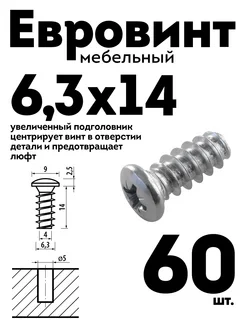 Евровинт еврошуруп 6 3х14 полукруглая головка 9мм 60 шт