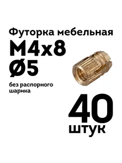 Футорка мебельная D5 М4 х 8 40 шт латунная без шарика