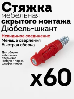 Стяжка мебельная невидимка дюбель-шкант 60 шт