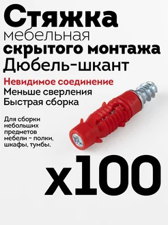 Стяжка мебельная невидимая дюбель-шкант 100 шт