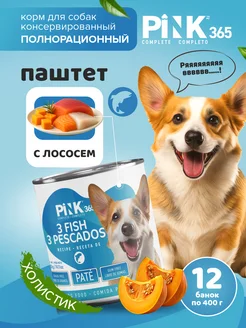 Влажный корм для собак 3 рыбы паштет 400г 12 шт