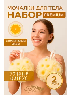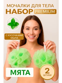 Мочалка для душа и тела массажная банная с мылом 2 шт