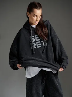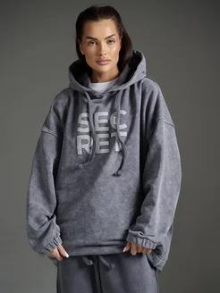 Худи оверсайз с принтом SECRET и начесом