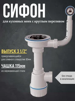 Сифон для раковины на кухню 3 1 2" с переливом круглым