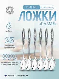 Набор из 6 чайных ложек "Пламя" мельхиор