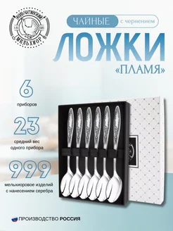 Набор из 6 чайных ложек "Пламя" мельхиор с футляром