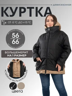 Куртка короткая зимняя oversize больших размеров с капюшоном