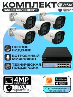 Комплект видеонаблюдения IP, 5 уличных камеры 4Мп