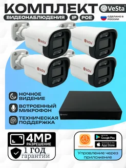Комплект видеонаблюдения IP, 4 уличных камеры 4Мп