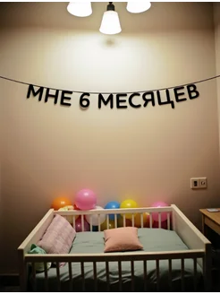 Деревянная гирлянда растяжка на стену Мне 6 месяцев