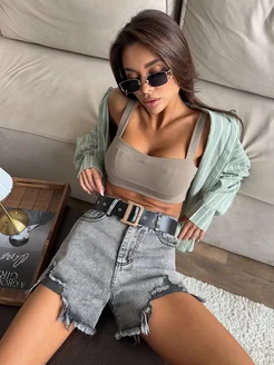 Шорты джинсовые рваные с высокой посадкой