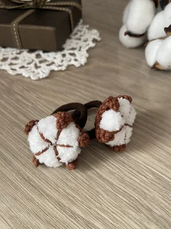 Хлопок зимние вязаные бантики для волос на резинке - 2 шт