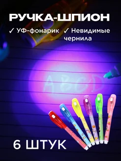 Ручка-шпион с невидимыми чернилами и УФ фонариком 6 штук