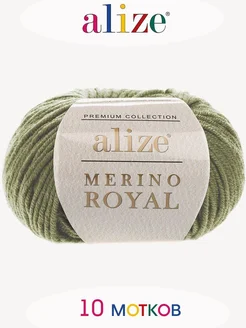 Пряжа Ализе Мерино роял Merino royal 485 хаки 10 шт