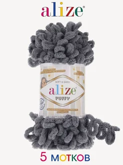 Пряжа Ализе Пуффи Puffy 87 серый 5 шт