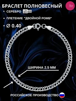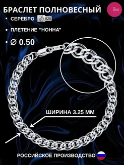 Браслет на руку серебро 925 пробы плетение нонна 3,25 мм