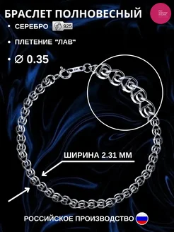 Браслет на руку серебряный 925 пробы панцирное плетение