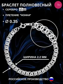 Браслет на руку серебро 925 плетение нонна ширина 2,2 мм