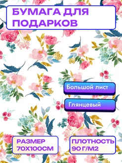 Упаковочная бумага "Цветы акварельные" 70х100см