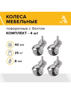 Колеса мебельные-шар SCmt 20 поворотные, 40 мм, 25 кг