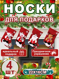 Новогодние носки для подарков елочное украшение 4 шт