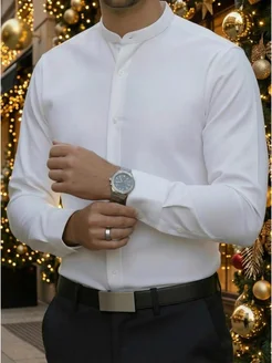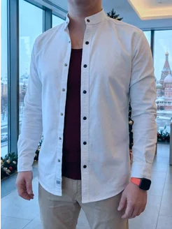 Рубашка под джинсовую с кнопками и воротником стойкой