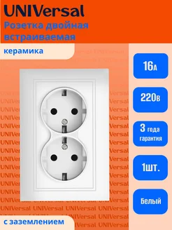 ЛЕЗАРД.Розетка двойная внутренняя керамическая с заземлением