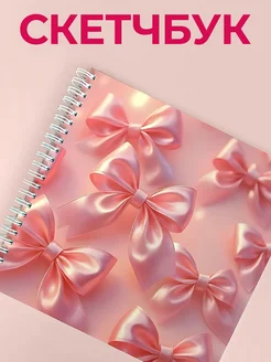 Скетчбук для рисования квадратный на кольцах розовый Бантики