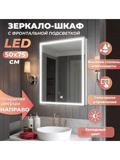 Зеркало шкаф с подсветкой в ванную Мира 50 правое