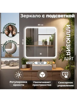 Настенное зеркало в ванную с подсветкой 80х80 Иллюзия Лайт