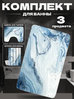 Набор для ванной комнаты тканевая штора и коврики 3в1