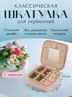 Шкатулка для украшений маленькая бежевая с зеркалом