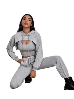 Костюм тонкий спортивный из 3-х с укороченным худи